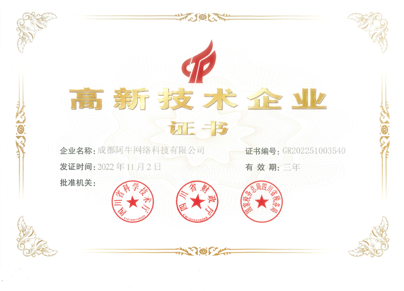 高新技术企业证书
